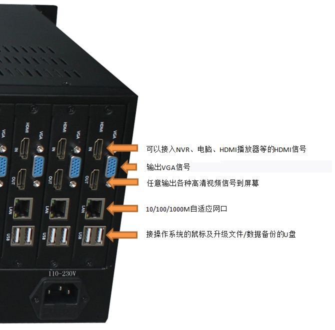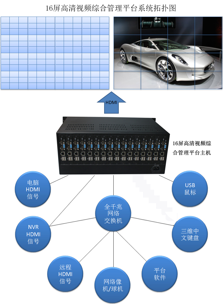 注:◆超出256路网络视频需要另加费用 ◆本机只做只做HDMI信号拼接,VGA口不做拼接处理 ◆超出16屏的系统,需另加1-2台以上机箱做到32屏或48屏或更多屏,第1台的第1张解码卡亦为主机卡,可以管理整个系统,鼠标或键盘也只用到1个,相应的参数自行更改行,这边不另行 一 一 配置参数。